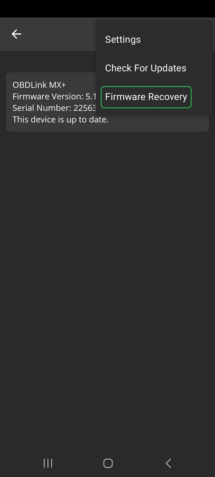 tap Firmware Recovery.Tap the Menu icon (3 vertical dots),